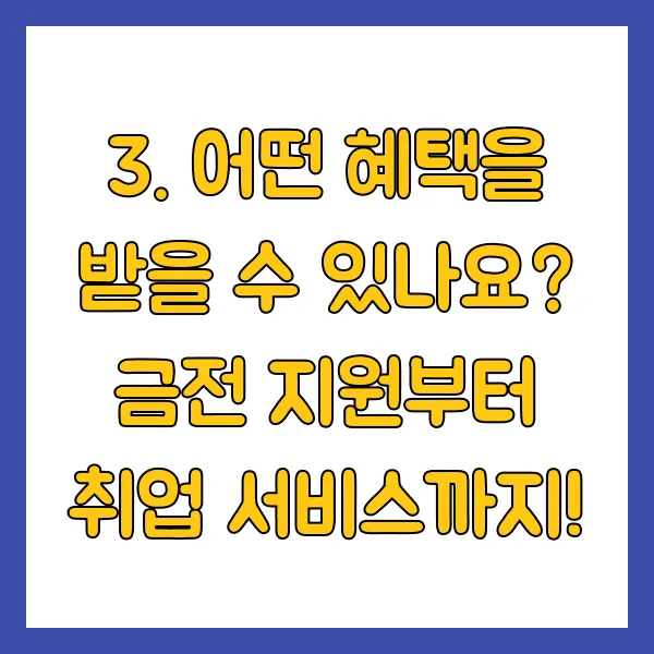 3. 어떤 혜택을 받을 수 있나요? 금전 지원부터 취업 서비스까지!