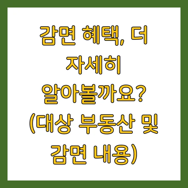 감면 혜택의 구체적인 내용과 어떤 부동산에 적용되는지 궁금하시죠? 모든 부동산에 일괄적으로 적용되는 것은 아니니, 잘 확인하셔서 혜택을 놓치지 않도록 해주세요.