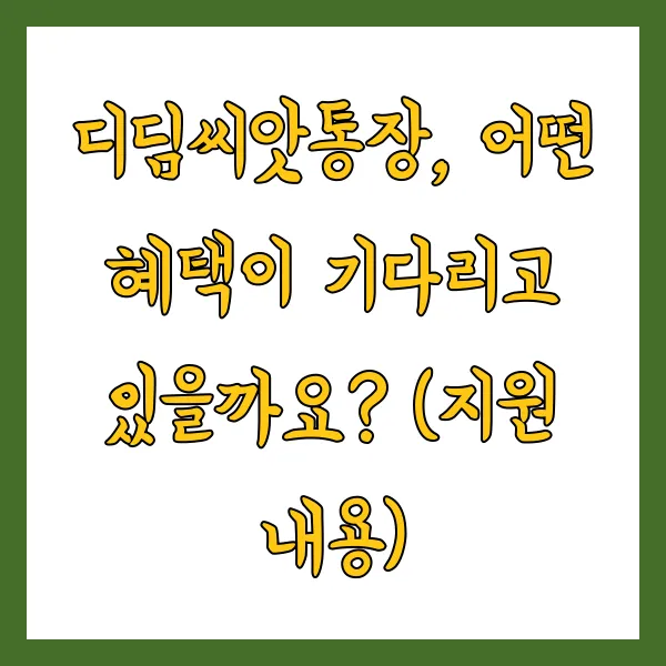 자, 그럼 이렇게 좋은 디딤씨앗통장에 가입하면 어떤 혜택을 받을 수 있는지 궁금하시죠? 정말 매력적인 혜택들이 가득하답니다!