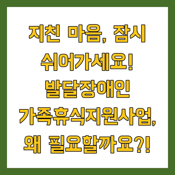 지친 마음, 잠시 쉬어가세요! 발달장애인 가족휴식지원사업, 왜 필요할까요?!
