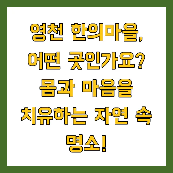 영천 한의마을, 어떤 곳인가요? 🌿 몸과 마음을 치유하는 자연 속 명소!