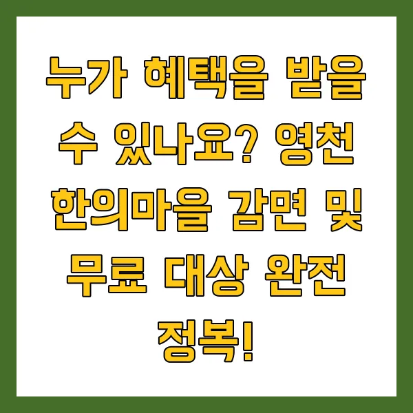 누가 혜택을 받을 수 있나요? 영천 한의마을 감면 및 무료 대상 완전 정복! 💖