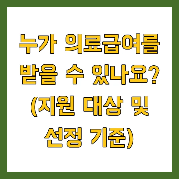 누가 의료급여를 받을 수 있나요? (지원 대상 및 선정 기준)