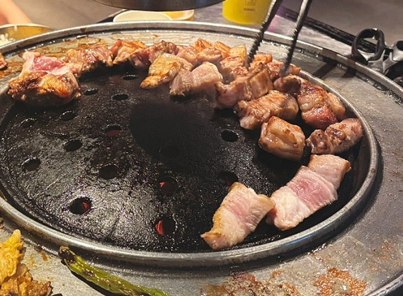 불판 또한 특수 제작한 무쇠 불판으로 숯불 직화 훈연을 더해