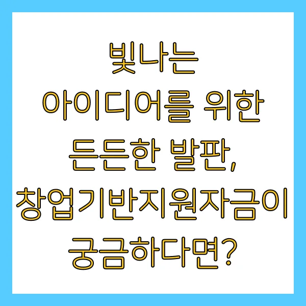 💡 빛나는 아이디어를 위한 든든한 발판, 창업기반지원자금이 궁금하다면?