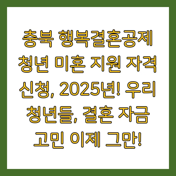 충북 행복결혼공제 청년 미혼 지원 자격 신청, 2025년! 💖 우리 청년들, 결혼 자금 고민 이제 그만!